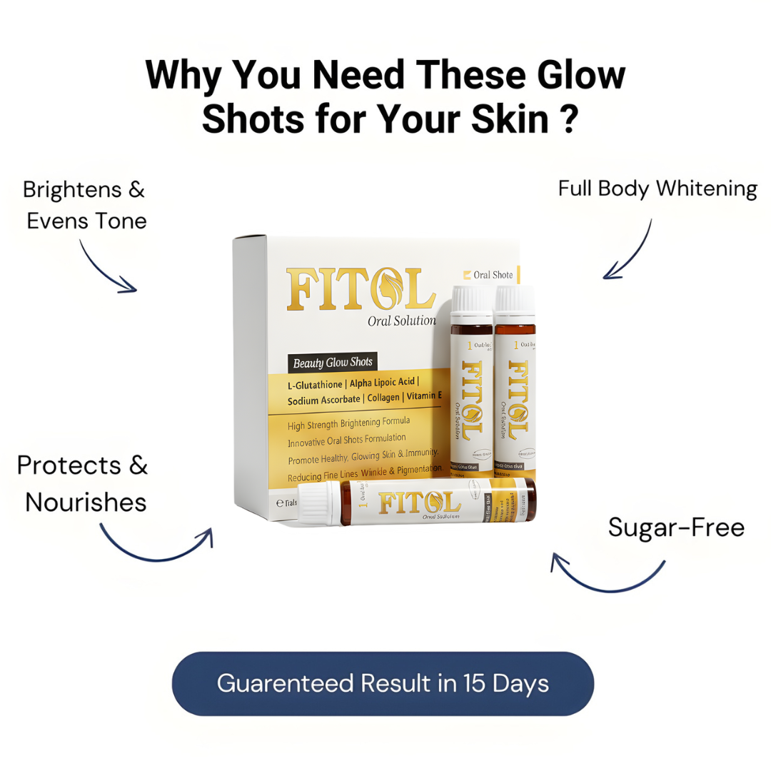 Say goodbye to dull, uneven skin and hello to a brighter, youthful glow with FITOL™ Beauty Glow Shots — a powerful oral solution infused with L-Glutathione, Alpha Lipoic Acid, Collagen, Sodium Ascorbate, and Vitamin E.